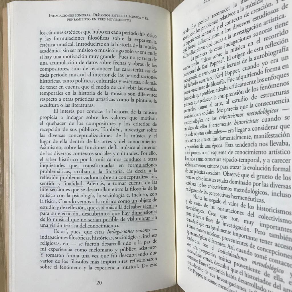 Hay un momento esencial: conocer la filosofía musical de Eugenio Trías, la tercera parte de mi libro está centrada en el análisis que hace este autor sobre la segunda sinfonía de Gustav Mahler. Al leer El canto de las sirenas de Eugenio Trías, en 2007, pensaba que esto es lo que quise haber leído en toda mi vida. Era un filósofo que había penetrado con profundidad en la música. Comencé a reflexionar más. Simultáneamente, conocí a Daniel Barenboim, a quien admiro y he tenido la fortuna de escucharlo. Tiene un libro hermosísimo, El sonido es vida: el poder de la música. Para comenzar a pensar, esos dos libros fueron fundamentales. Todo lo que la música, a partir de su dimensión temporal, nos puede otorgar. Me hubiese gustado tener colegas o amigos con los cuales compartir.